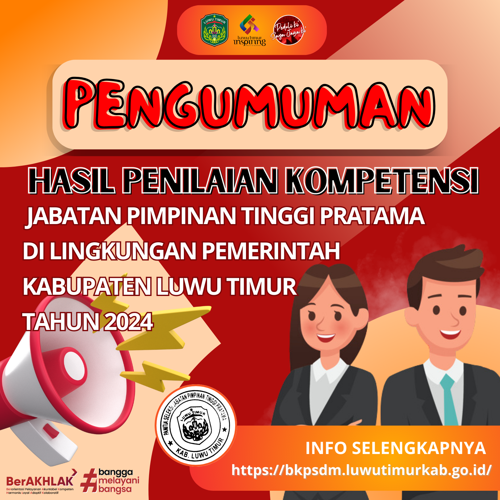 HASIL PENILAIAN KOMPETENSI (ASSESMENT CENTER) SELEKSI TERBUKA JABATAN PIMPINAN TINGGI PRATAMA DI LINGKUNGAN PEMERINTAH KABUPATEN LUWU TIMUR TAHUN 2024