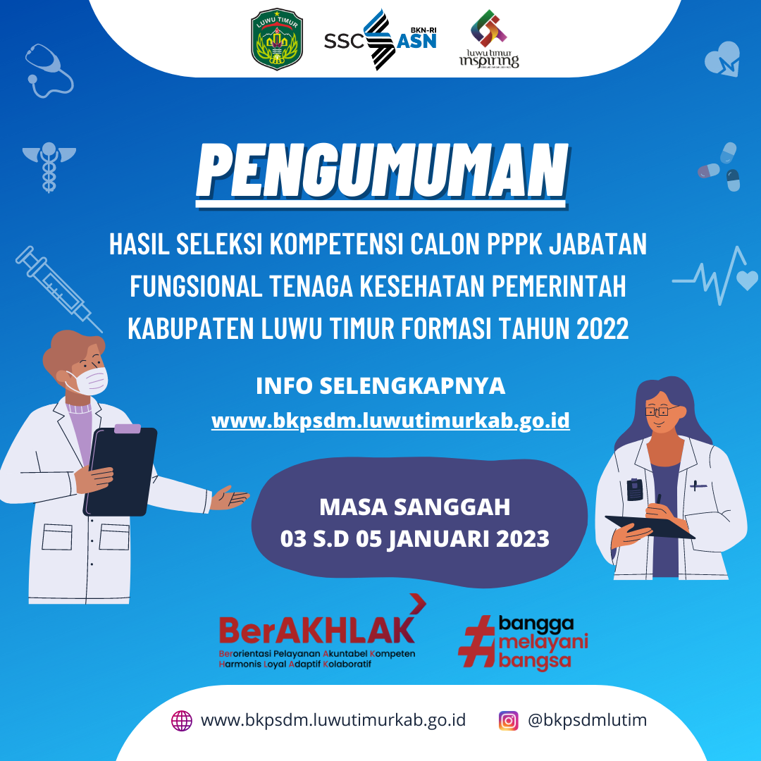 HASIL SELEKSI KOMPETENSI CALON PEGAWAI PEMERINTAH DENGAN PERJANJIAN KERJA (PPPK) TENAGA KESEHATAN PADA INSTANSI PEMERINTAH KABUPATEN LUWU TIMUR TAHUN 2022